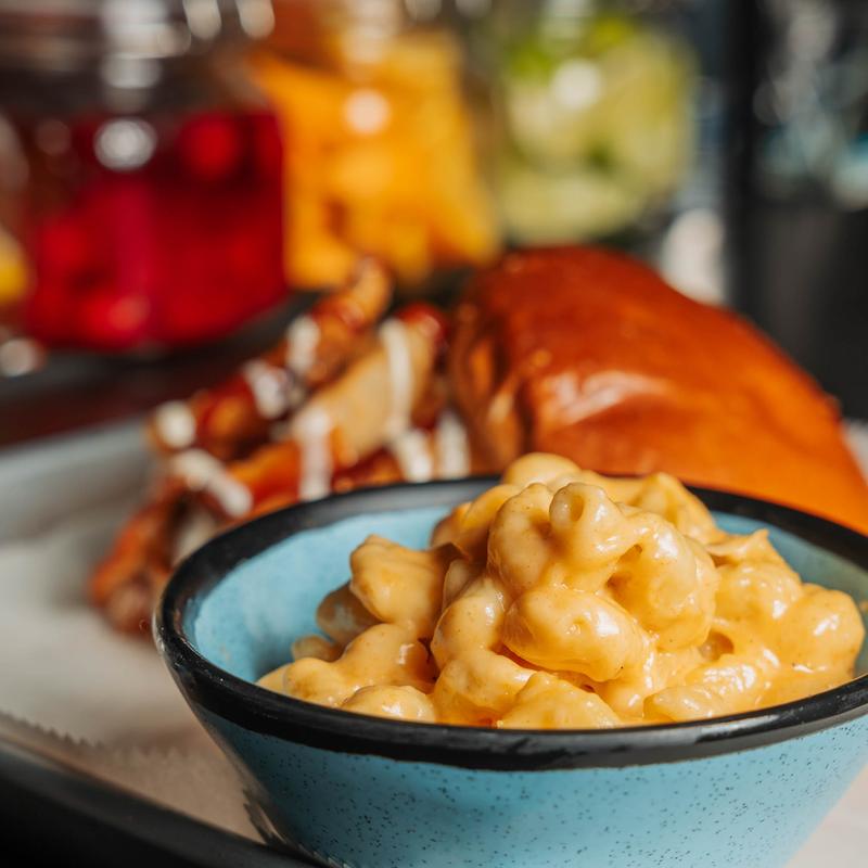 Crispy pretzel sticks buttered and salted with house Cooper cheese sauce and Creole mustard
