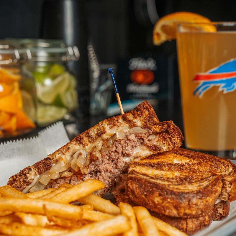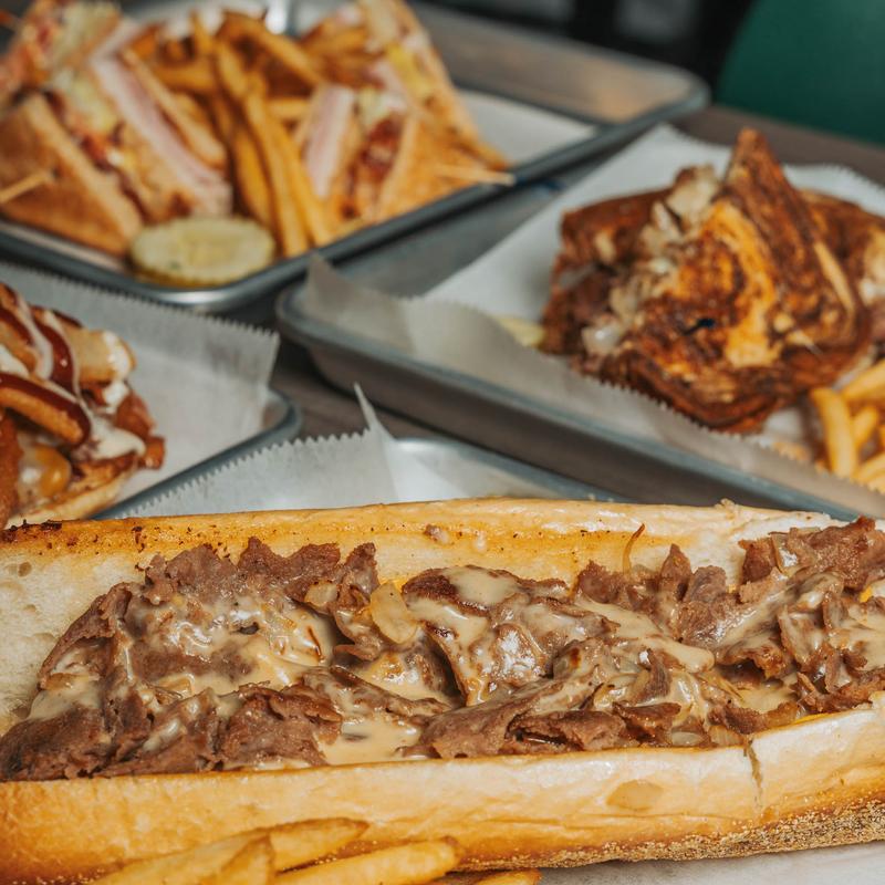Shaved steak, onions, Cooper cheese sauce, pressed Philly roll with mayo | Add Peppers +$0.50 | Mushrooms +$0.50